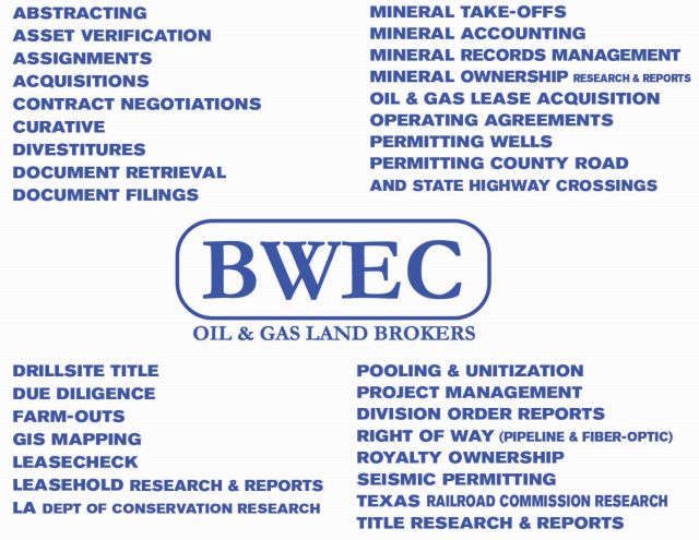We offer a wide variety of services that reflect our wide variety of experiences in the oil and gas industry. As a result of over 30 years in the business, our list of contacts and pool of landmen is deep.